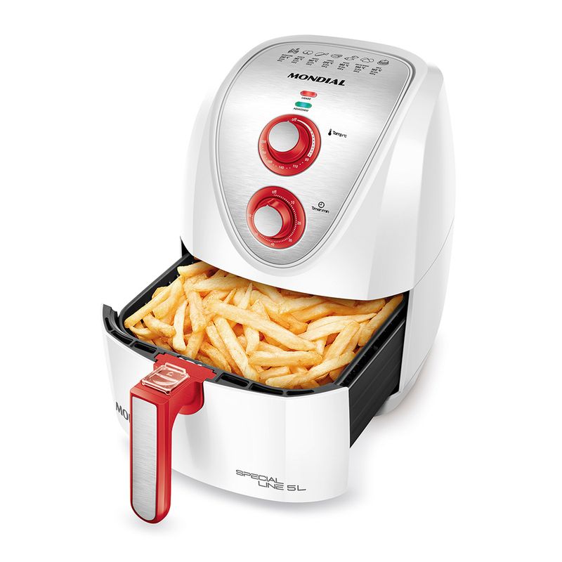 A Air Fryer Mondial pode levar praticidade e alimentação saudável para a sua rotina diária. E, com o cesto com capacidade de 5 litros, você pode compartilhar esses benefícios com toda a sua família! A Tecnologia de Circulação de Ar Quente cozinha, frita (a ar), assa ou tosta os alimentos sem precisar adicionar óleo ou manteiga. Aliada à alta potência, a tecnologia da Fritadeira a Ar também possibilita rapidez nos preparos. Saiba mais sobre a AFN-51-WR: