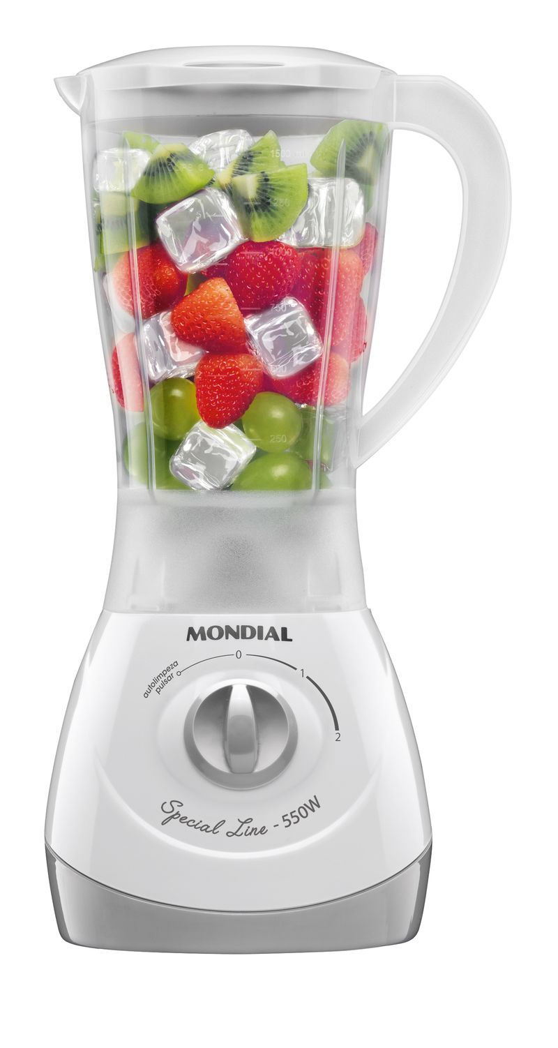 O liquidificador Mondial Special Line é um aliado na rotina da cozinha. São 550W de potência, capacidade total de 1,9 litros, além de 2 velocidades + Função Pulsar, que tritura até ingredientes mais duros. Você pode preparar torta de frango, bolo de milho, pão de queijo, massa de panqueca, queijadinha e muitas outras receitas com praticidade e rapidez. Saiba mais sobre o L-550-SL: